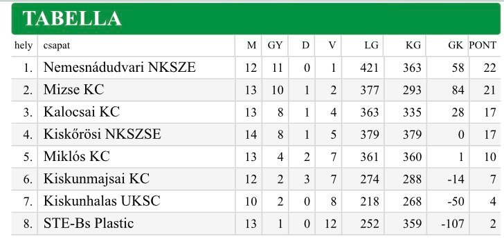 Miklós KC–Mizse KC 23–26 (11–12)